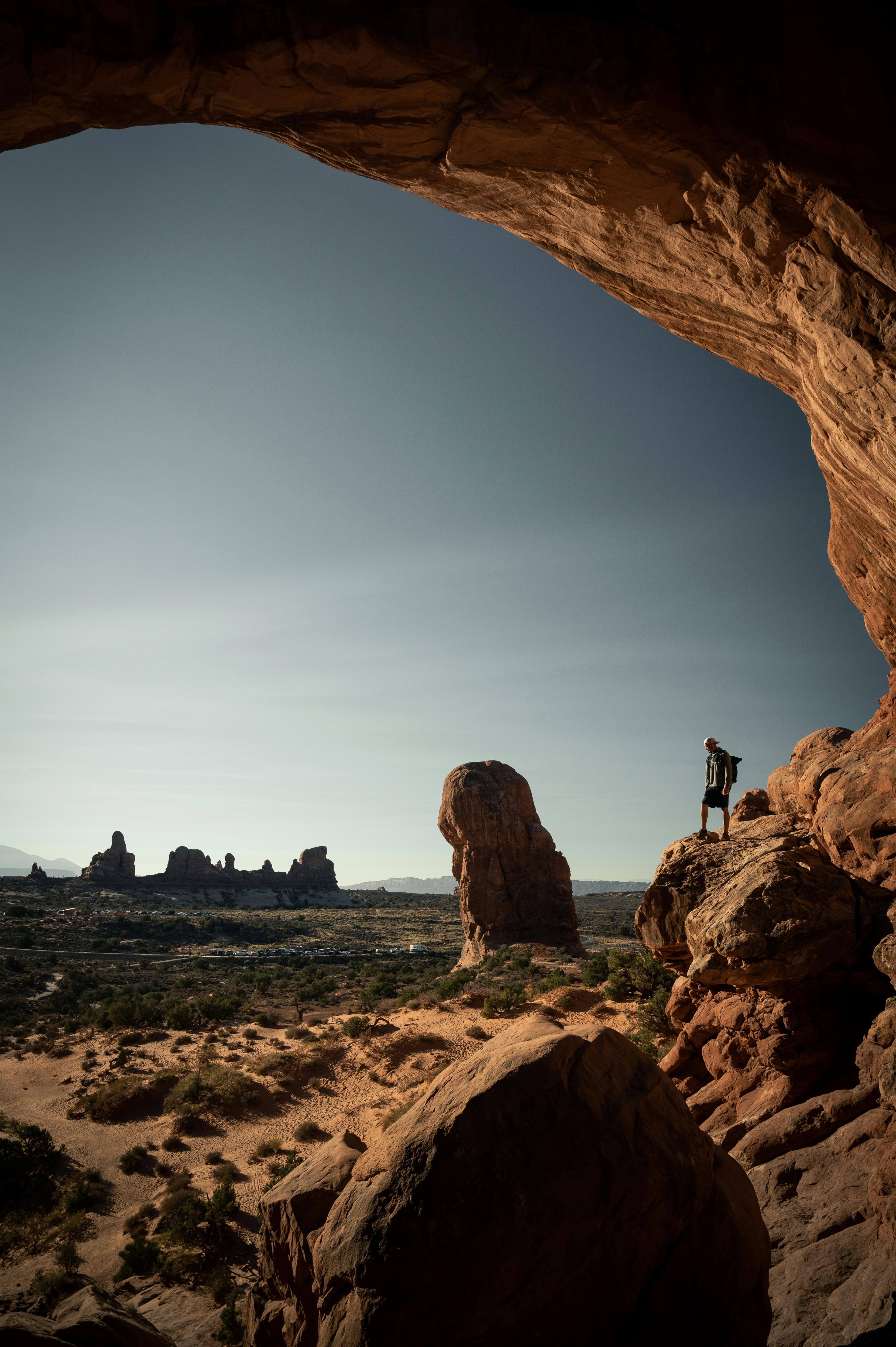 The first Arch you come across is the North Window, the most popular one on the hike. Scrambling from the tail to the Arch is relatively easy. You could even choose to stand inside the Arch and see the park below.